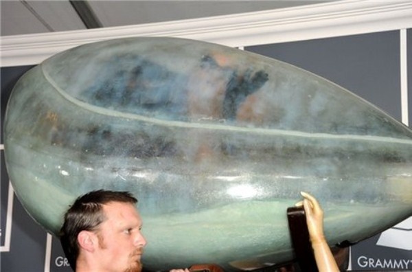 Популярная поп-дива Леди Гага появилась на церемонии вручения премии «Грэмми» в гигантском яйце. Reuters сообщает, что певицу, которая скрылась от глаз в специальном футляре, принесли несколько одетых в золотые костюмы помощников.