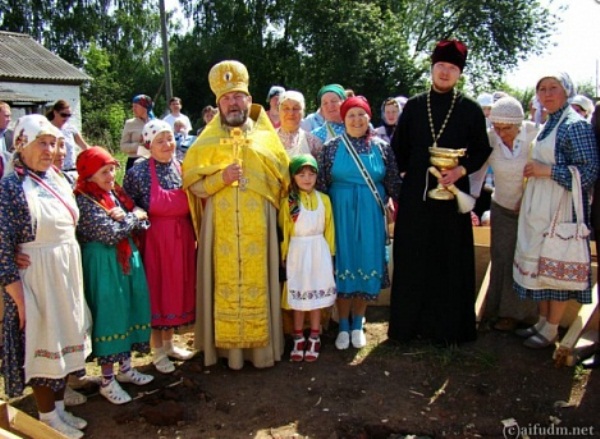 Участницам музыкального коллектива «Бурановские бабушки», которые стали лауреатами Международного музыкального конкурса «Евровидение-2012», во время церемонии установки святого креста в фундамент храма Святой Троицы в селе Бураново вручены награды Русской православной церкви.