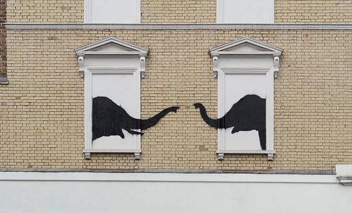 Неуловимый уличный художник Бэнкси представил два новых произведения искусства на стенах зданий в Лондоне: горного козла, сидящего на скале, и двух слонов, тянущихся друг к другу из зашторенных окон. Подробнее